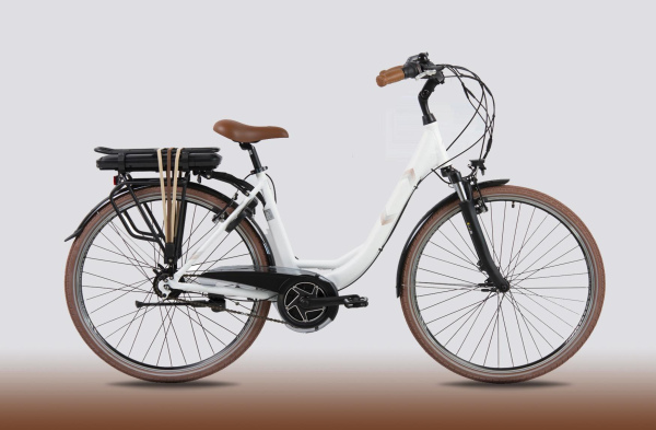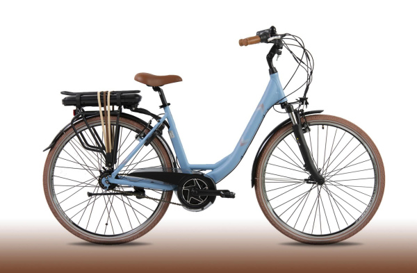 De Eluxo E-Voltage City N8 is een elegante en functionele elektrische fiets die speciaal is ontworpen voor dagelijks gebruik in de stad of ontspannen tochten daarbuiten. Het strakke pastelblauwe frame met lage instap zorgt voor optimale toegankelijkheid, terwijl de technische componenten gericht zijn op duurzaamheid, gebruiksgemak en comfort. Uitgerust met een krachtige 250W Bewo middenmotor, een efficiënte 468Wh accu, en soepel schakelende Shimano Revoshifter 8 versnellingen, biedt deze e-bike alles wat je nodig hebt voor betrouwbare en plezierige ritten. De V-brake remmen zorgen voor gecontroleerd stoppen, en met een maximale actieradius van 120 km en vijf ondersteuningsstanden geniet je elke dag van zorgeloos fietsplezier.